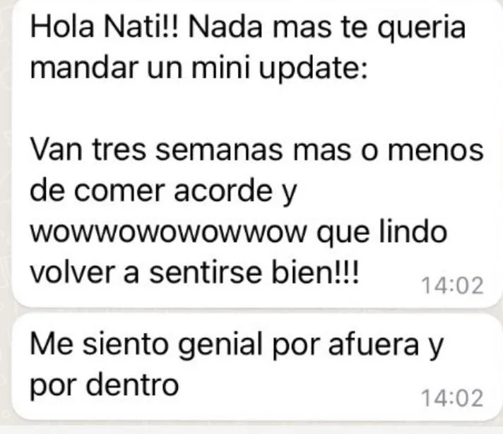 ¡Me siento realmente feliz! Ya no me muero de cansancio a media tarde y me levanto con mucha más pila. Aguanto despierta y con energía todo el día. Chau dolor de cabeza de la nada, chau fastidio y mala onda, chau ansiedad. Baje de peso y se sigue acomodando